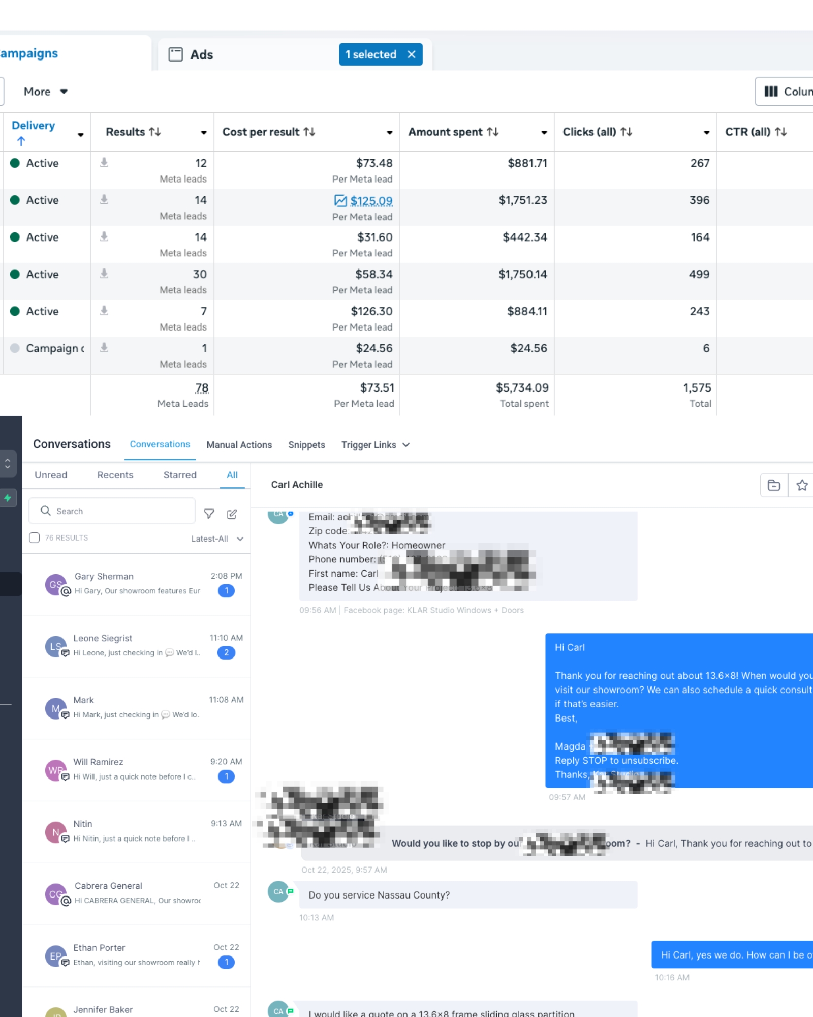 These are examples of real inbound interest, active lead conversations, and actual engagement from digital campaigns.